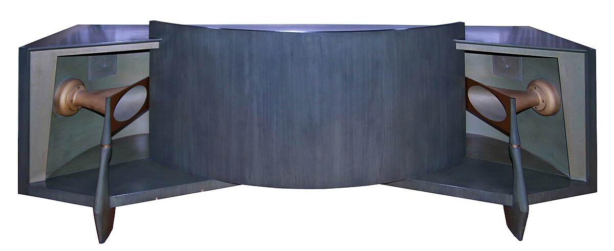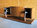 彼等が作り上げたそのデザイン、特に明確なステレオイメージを得るためにスピーカー中央に湾曲した反射板(響板の効果もあり)は本機の大きな特徴となりました。